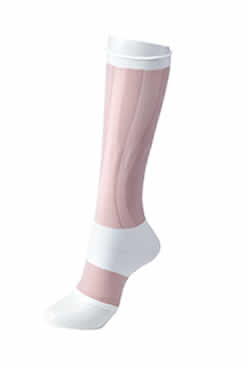 ふくらはぎと足をカバーします。つま先があいているオープントゥタイプです。